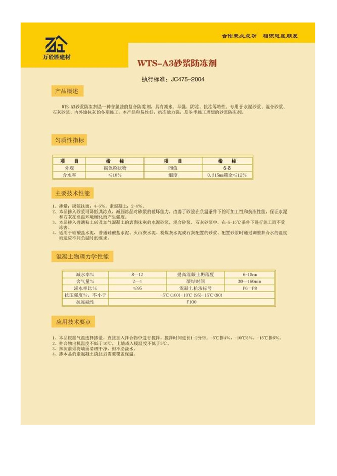 WTS-A3砂漿防凍劑